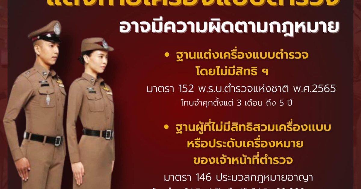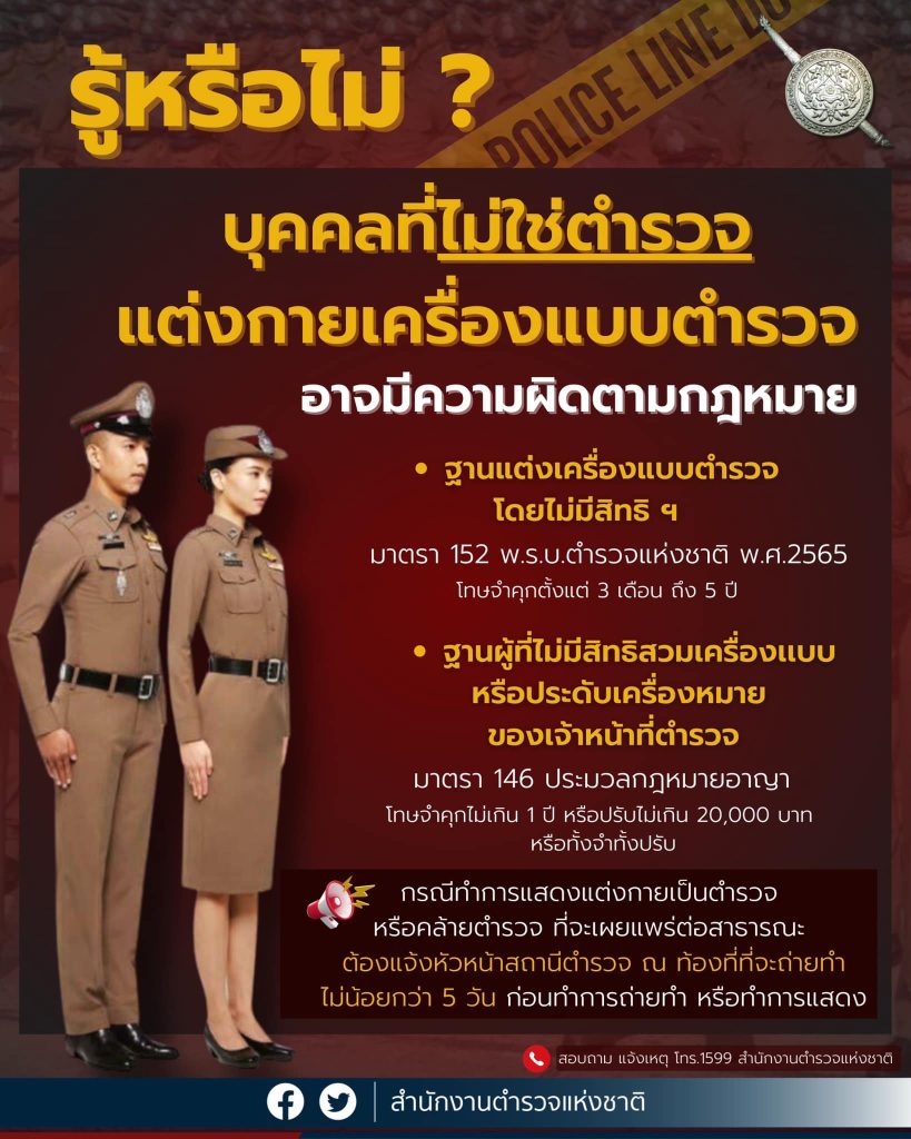 รู้หรือไม่ ? บุคคลที่ไม่ใช่ตำรวจ แล้วแต่งกายเครื่องแบบตำรวจ อาจมีความผิดตามกฎหมาย