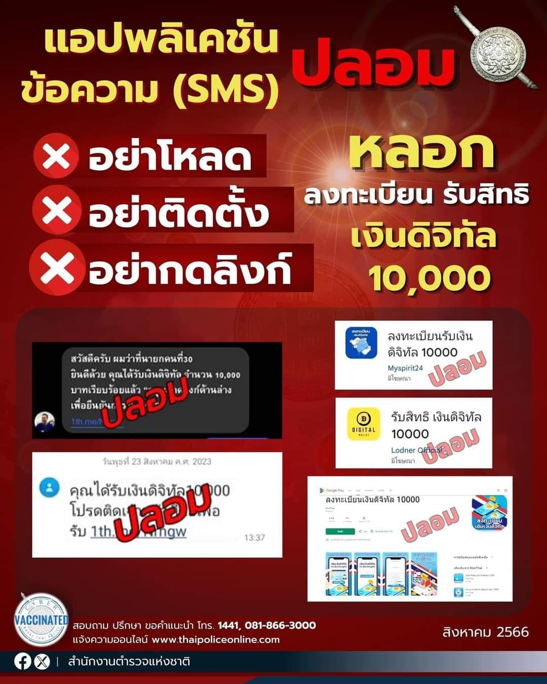เตือนภัย มิจฉาชีพส่ง SMS แจ้งว่าได้รับ #เงินดิจิทัล 10,000 หลอกให้ติดตั้งแอปพลิเคชันปลอม ลวงลงทะเบีย