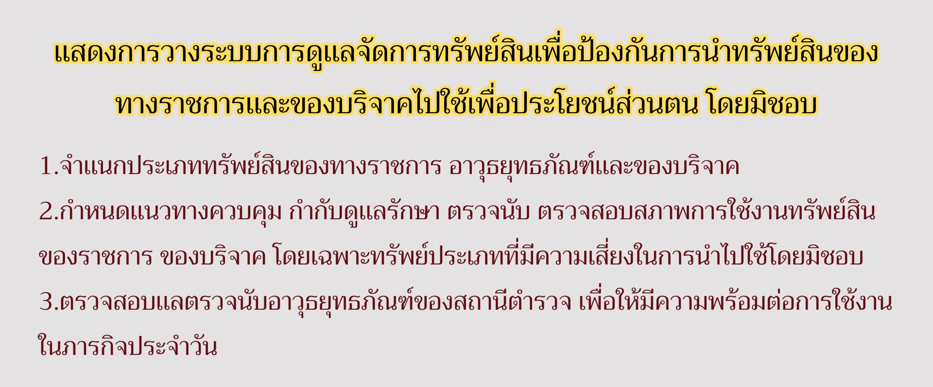 O23 การจัดการทรัพย์สินของราชการ ของบริจาค การจัดเก็บของกลางและการรายงานผล